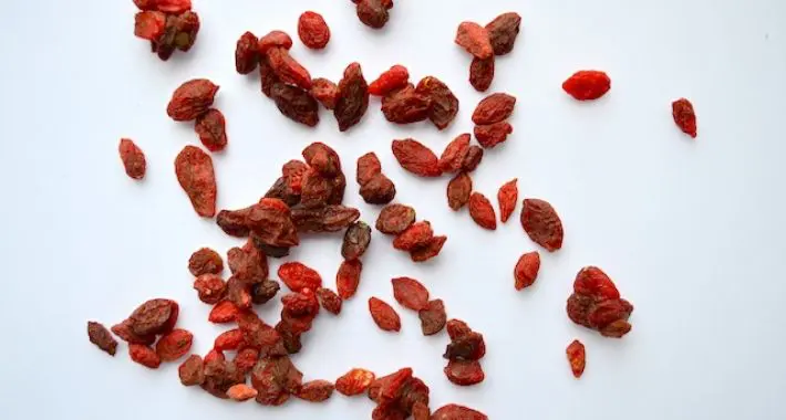 Goji bessen worden ook wel superbessen genoemd. Ze vinden hun oorsprong in Mongolië, Tibet. Goji bessen lijken op rozijnen maar zijn felrood van kleur, de smaak is friszuur, te vergelijken met cranberry’s. De goji bes bevat veel voedingsstoffen als Vitamine C, mineralen en beta caroteen en 18 verschillende amino zuren. Je kan Goji bessen eten als snack, door de yoghurt, in een smoothie of je kan er thee van trekken. De aanbevolen dagelijkse hoeveelheid is een klein handje per dag.