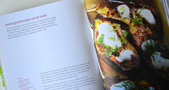 Het 416 pagina’s tellende, boek bestaat uit 12 hoofdstukken waaronder troosteten, mezze, grill en bbq gerechten en een niet verwachte, maar aangename verrassing in dit boek, het hoofdstuk brood. Toen ik de titel las, dacht ik meteen aan 416 pagina’s met groente recepten, maar groente kan je natuurlijk prima combineren met brooddeeg en pizzadeeg. Daarnast tal van lekkere recepten, geroosterde pompoenen uit de oven, heerlijke gevulde soepen met kikkererwten en snijbiet, quiches met sla en lente ui en lekkere dips van artisjok en aubergines.