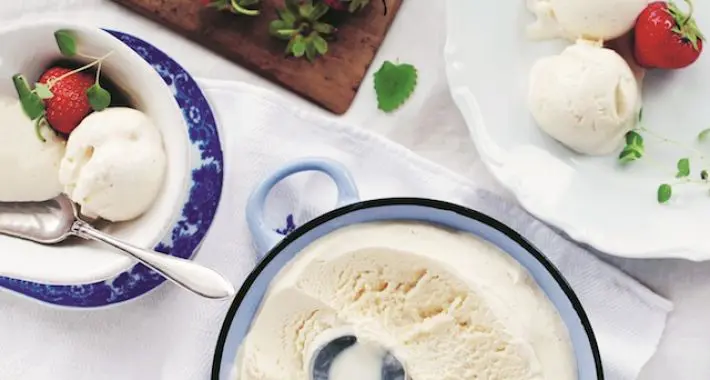 Haar blog Call me Cupcake volg ik al jaren, het staat boordevol lekkers en haar foto’s zijn net schilderijtjes, je blijft er naar kijken. Al eerder schreef zij een boek Trendy Taarten en IJspret is haar tweede boek, dat zoals de titel al doet vermoeden boordevol ijsrecepten staat. Het boek begint met “alles wat je moet weten om ijs te maken” en dat vind ik reuze handig, want ijs maken kan op verschillende manieren. Zo heb je sorbets, gemaakt van fruit en suikersiroop, sherbets, dat zijn sorbets maar dan met melk of slagroom, roomijs met óf zonder eieren en semifreddo, wat half bevroren ijs betekent. Linda legt uit hoe je ijs met en hoe je ijs zonder een ijsmachine maakt en ze geeft handige tips en trucs. “Kies voor volle melk, magere melk bevat meer water waardoor je ijs niet zo romig wordt”. “En let er bij de aanschaf van een ijsmachine op dat je kom in de vriezer past, anders heb je er niks aan”.