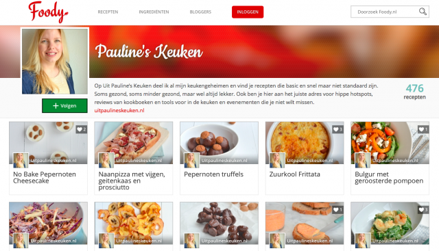 Bezoek je verschillende foodblogs om zo de lekkerste recepten te vinden? Dat is niet meer nodig met de komst van Foody.nl. Op dit nieuwe platform zijn de lekkerste recepten van de leukste foodbloggers verzameld. Je kunt hier inspiratie op doen en jouw favo foodbloggers volgen. Inmiddels staan er ruim 4000 recepten Foody.nl. De site heeft een handige zoekfunctie, je kan zoeken op soort gerecht en keuken, maar ook op bereidingstijd of specifieke foodblogger. Wat ook handig is, is dat je een lijst aan kan maken met recepten die je graag wilt bewaren of delen met vrienden. Natuurlijk is Uit Pauline’s Keuken ook vertegenwoordigd op dit platform, ik zou zeggen, neem snel een kijkje!