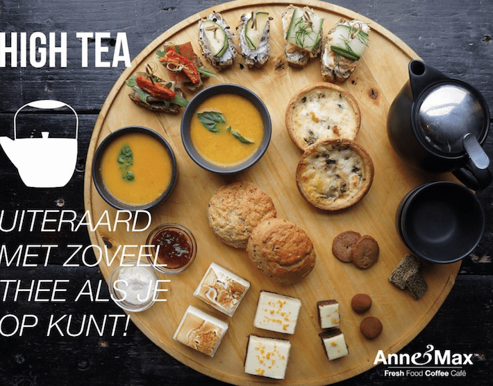 De tweede winnaar wint een high tea voor 2 personen bij Anne & Max. Een van onze favoriete hotspots. Hier kun je met een vriend of vriendin genieten van een uitgebreide high tea. Leuk he?