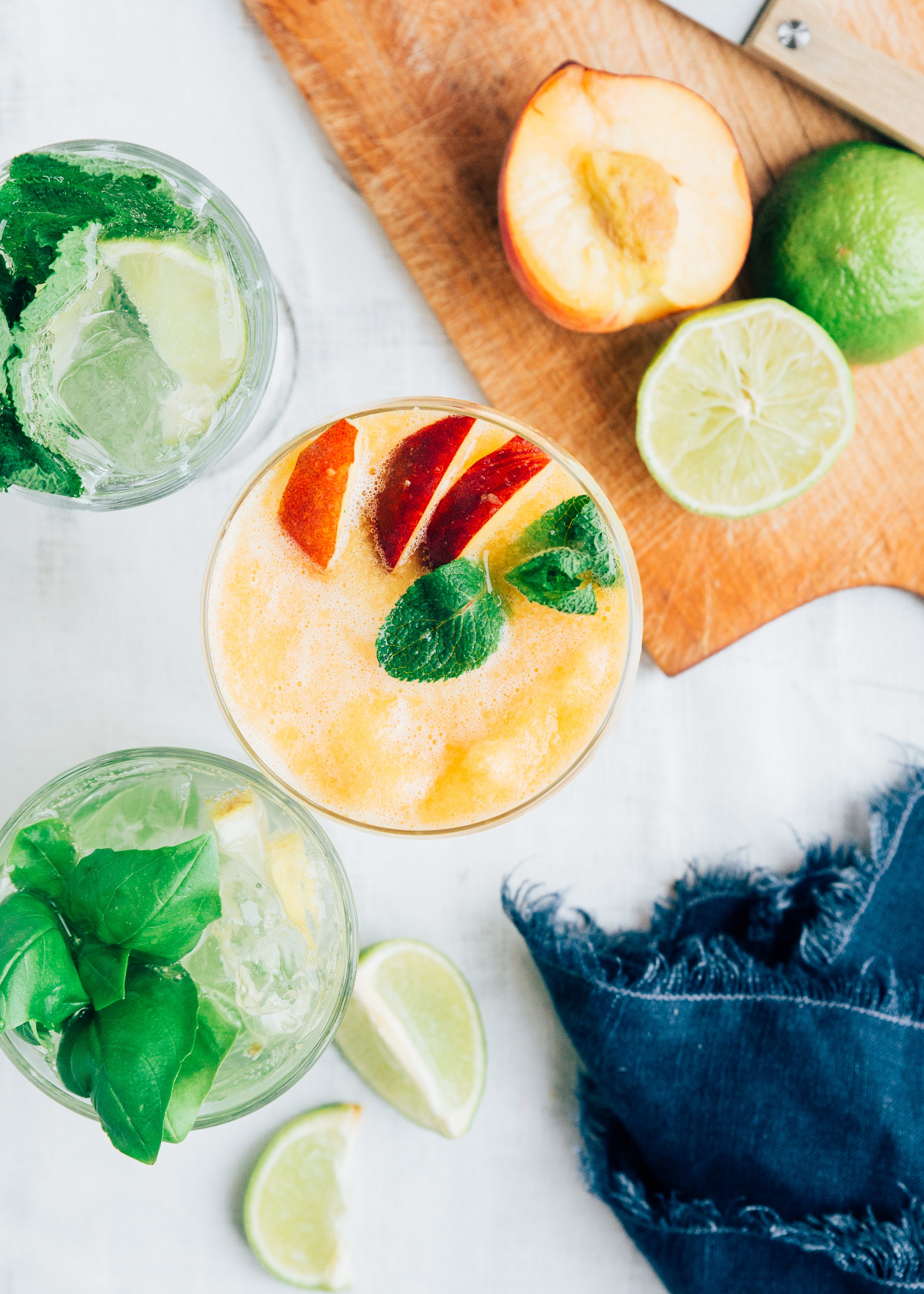 Een Bellini is een cocktail van perzik en prosecco. Ik maak er nu een frozen variant van met bruisend water en perzik. Het is net een soort slush puppy (maar dan zonder heel veel suiker).