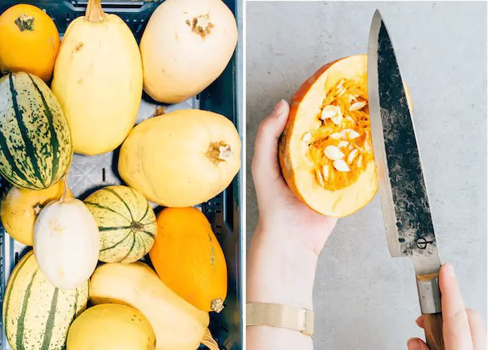Toegegeven, pompoen snijden kan – zeker met de groene pompoen, de hokkaido pompoen – een hels karwei zijn. Maak van ‘kan’ maar ‘kon’, want die vlieger gaat mooi niet op als je de fraaie flespompoen gebruikt. Deze soort is net iets makkelijker te schillen en te snijden vergeleken met de andere pompoen soorten. Over dat schillen nog wel een opmerking, want het is dus geen must bij de flespompoen. Tijdens het bereiden wordt die namelijk zachter en zachter. Heel lekker en extra vitamines voor jou aangezien in de schil veel gezonde voedingsstoffen zitten. En mocht je er als een berg tegenaan hikken om de pompoen te snijden, dan kan je altijd nog vallen voor de blokjes pompoen uit het koelschap bij de supermarkt. Iets met ‘gemak’ en ‘de mens dienen.’