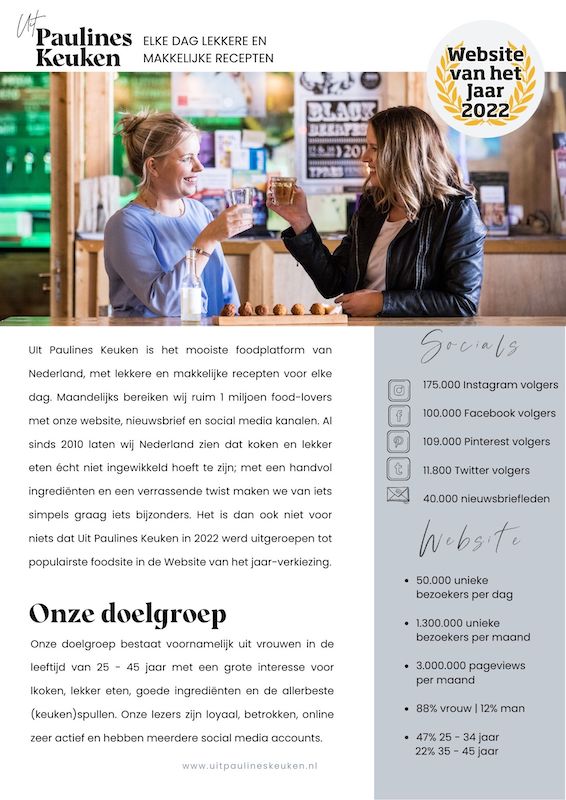 Wij creëren recepten die jouw merk laten schitteren. Deze worden gedeeld op onze website, social kanalen en in onze goed gelezen nieuwsbrief. De SEO-geoptimaliseerde artikelen en uitgebreid geteste receptuur bevat kooktips en professioneel gestylde beelden. Deze beelden zijn optioneel beschikbaar voor jouw eigen (social) kanalen, waardoor je content nóg breder inzetbaar is.
