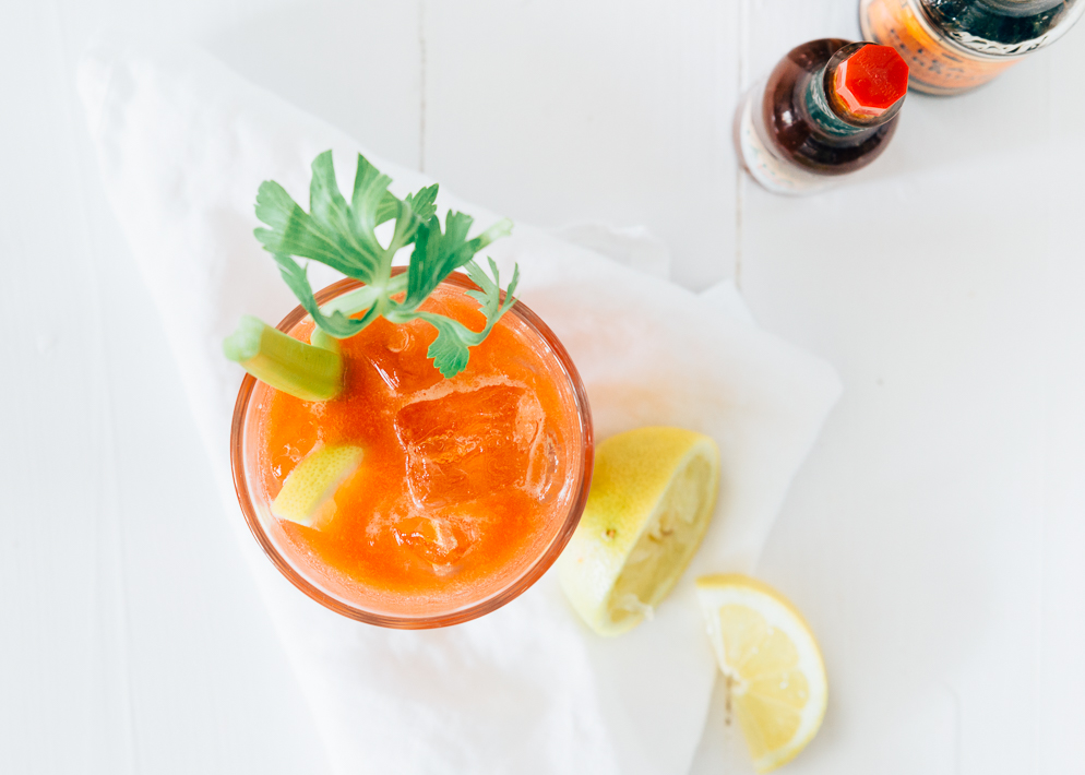 Garneer de Bloody Mary met een partje citroen en een stengel bleekselderij. Serveer meteen.