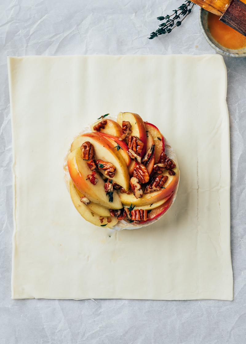 - Vervang de appel eens door peer, dat combineert ook heel goed met camembert in bladerdeeg.