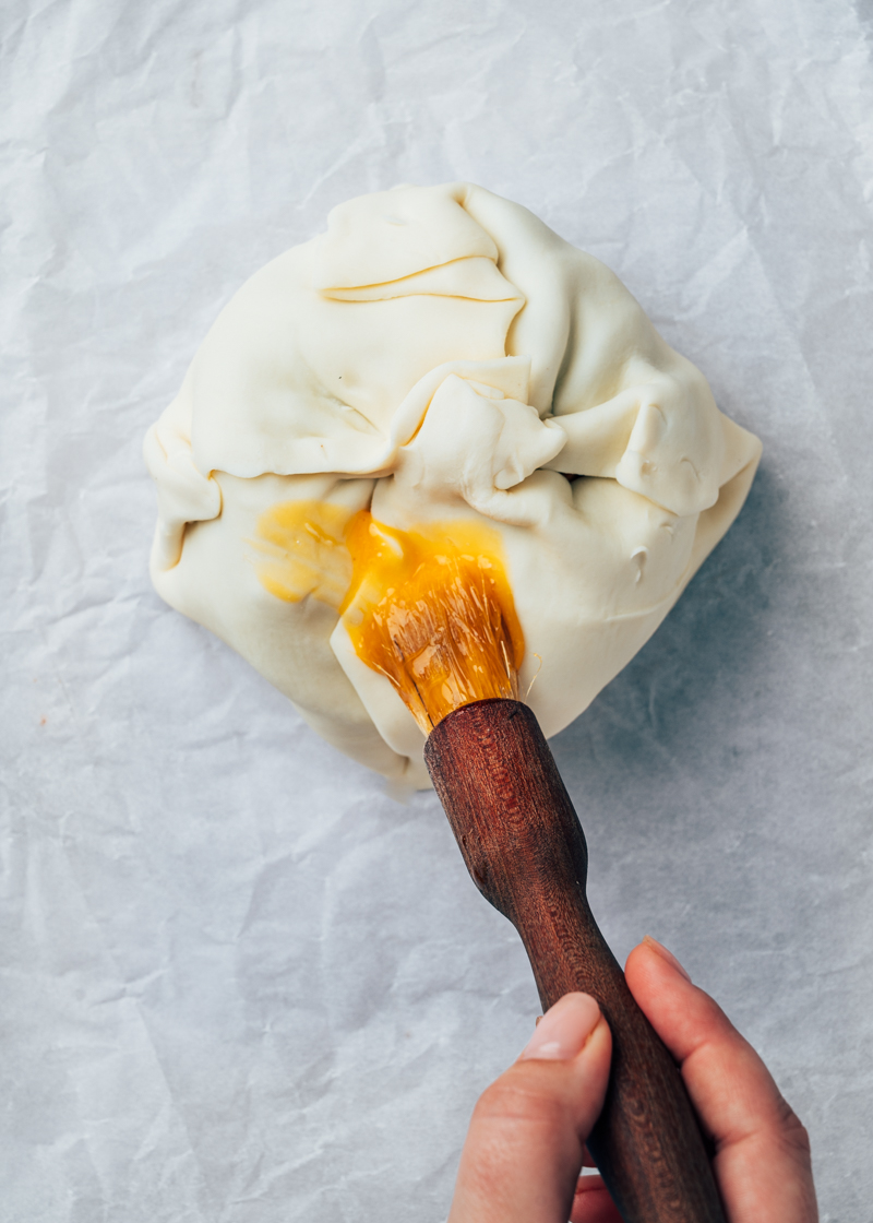 Bestrijk het bladerdeeg met wat losgeklutst eigeel.