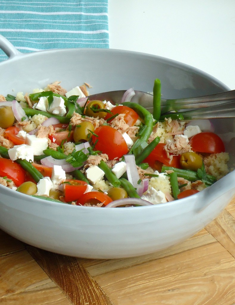 Wij zijn altijd te porren voor frisse salades die je in een handomdraai op tafel zet. Deze couscoussalade met tonijn is daar het perfecte voorbeeld van. Denk: Marokkaanse couscous meets Franse salade Niçoise. Oftewel, een vrolijke mix van smaken uit de Noord-Afrikaanse en Franse keuken: couscous met tonijn, feta, boontjes, tomaatjes en veel verse kruiden. Lekker hartig, fris én snel klaar.