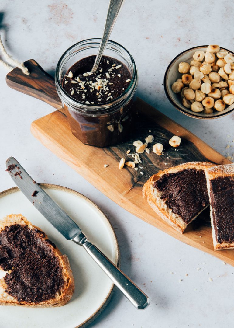 Het mooie in deze is dat de keukenmachine eigenlijk het meeste werk doet. De hazelnootpasta heeft iets meer structuur en crunch door de gemalen hazelnoten. Groot voordeel van een eigen variant is dat er ook veel minder suiker in zit. Kun je er zonder schuldgevoel eindeloos van eten! 😉 Wil je de hazelnootpasta verwerken in een recept? Maak er dan eens een lekkere flensjestaart mee.