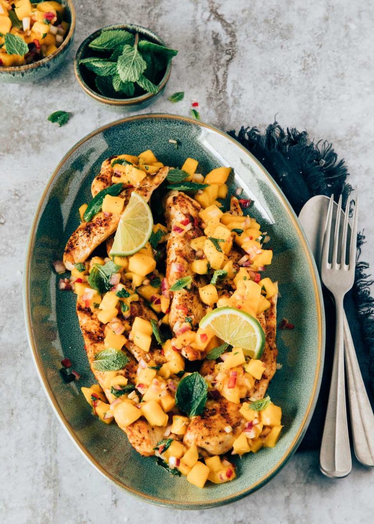 Wie houdt er niet van gegrilde kip? We gebruikten hiervoor mooie kipfilets en een grillpan. Dit recept wordt nog lekkerder, want we maakten bij de gegrilde kipfilet een mangosalsa. De salsa geeft dit gerecht een heerlijke zoete en pittige smaak. Het is een kwestie van de kip grillen en wat snijwerk en klaar is kees. Eventueel kun je bij de gegrilde kip nog een salade serveren. Een heerlijke zomerse maaltijd van verse ingrediënten!
