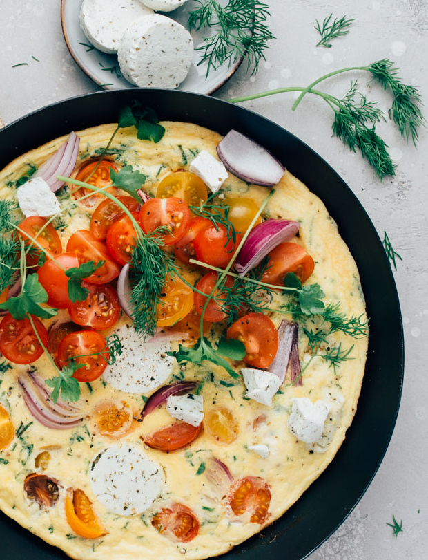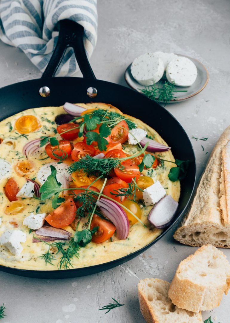 Deze frittata uit de oven met geitenkaas is superlekker en makkelijk om te maken. Win win! Frittata is echt een allemansvriend. En ook de perfecte restjesverwerker. Heb je nog wat spinazie over of wat tomaatjes? Kan er lekker in! Of wat dacht je van champignons of broccoli? Eigenlijk kun je bijna alle groenten wel verwerken in een frittata. In dit recept gebruiken we verschillende soorten tomaat. De basis van een frittata bestaat natuurlijk uit ei. En wat echt niet mag ontbreken is geitenkaas.