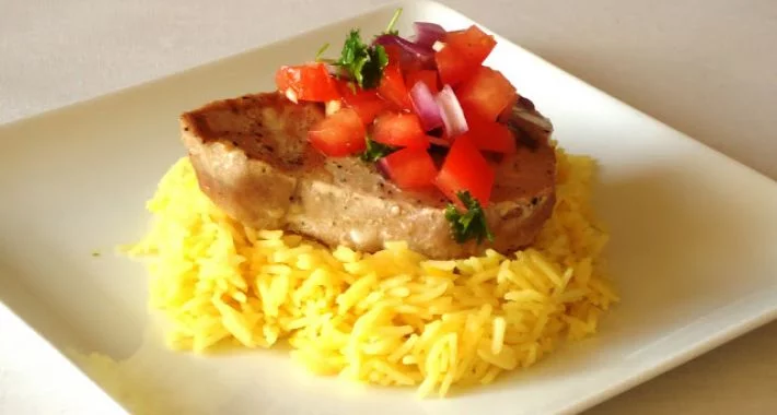 Snijd de tonijn in plakjes en serveer de tonijnsteak met de tomatensalsa. Lekker met wat rijst of quinoa en een partje limoen.