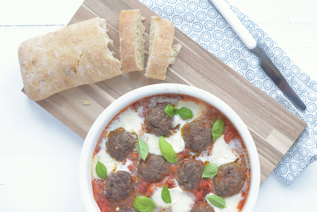 Deze gehaktballetjes uit de oven zijn niet alleen makkelijk te maken, maar ook nog eens super lekker! Omdat ze verder gegaard worden in de oven, heb je er bijna geen omkijken naar. Je kunt de gehaktballetjes maken, maar eventueel ook kant-en-klaar kopen. In ieder geval zijn het geen gewone gehaktballetjes. We serveren ze namelijk in een heerlijke tomatensaus en met mozzarella on top!