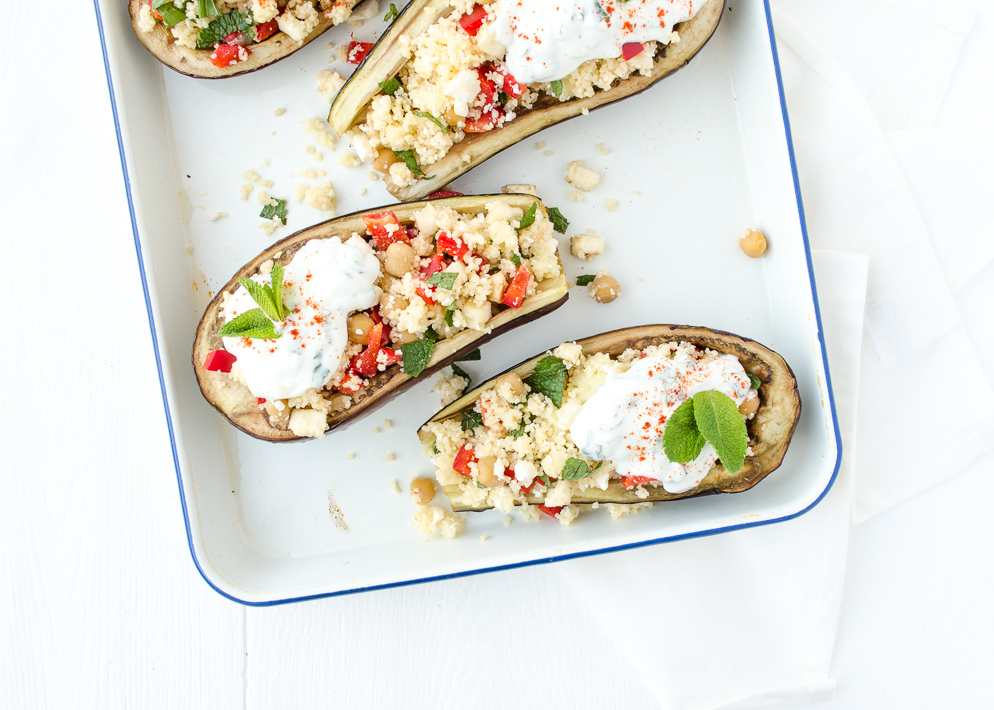 Dit recept voor gevulde aubergine is een echte gezinsfavoriet. Iedereen vindt dit wel lekker. Wij maken gevulde aubergine met gehakt, maar je kan er ook heel eenvoudig een vegetarische gevulde aubergine van maken. Dan voeg je vega gehakt of pulled oats toe. We brengen de gevulde aubergine op smaak met komijn, oregano en feta. Zo krijgt het bijna een Grieks tintje. Ook lekker om er tzatziki bij te serveren. Haal de zomer in huis met dit aubergine recept. Even voorbereiden en daarna kan de gevulde aubergine zo de oven in.