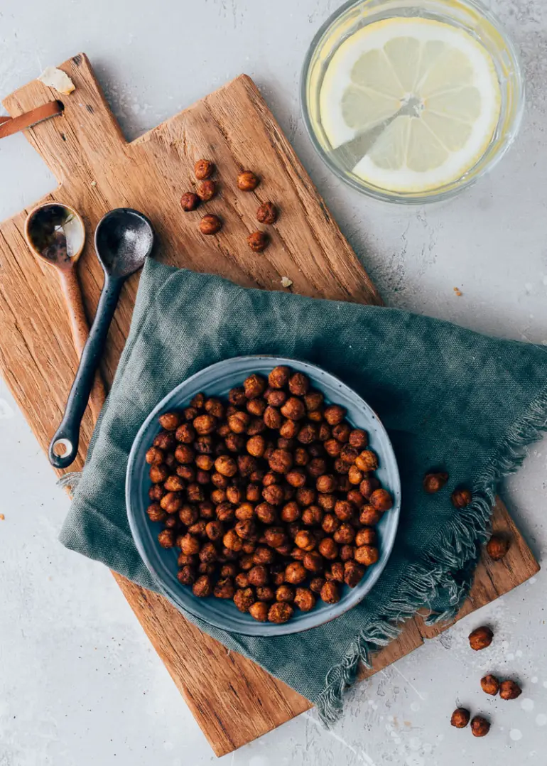 Wist je dat je van kikkererwten ook heel gemakkelijk een gezonde snack kunt maken? Je kunt de kikkererwten roosteren in de oven of Airfryer en daar worden ze lekker crunchy van, het lijken dan net borrelnootjes, alleen zijn deze veel gezonder en minder vet. We hebben de geroosterde kikkererwten op smaak gebracht met wat knoflook en paprikapoeder. Dat zijn meteen de 1e twee smaken die bij ons op komen als we aan chips en nootjes denken.