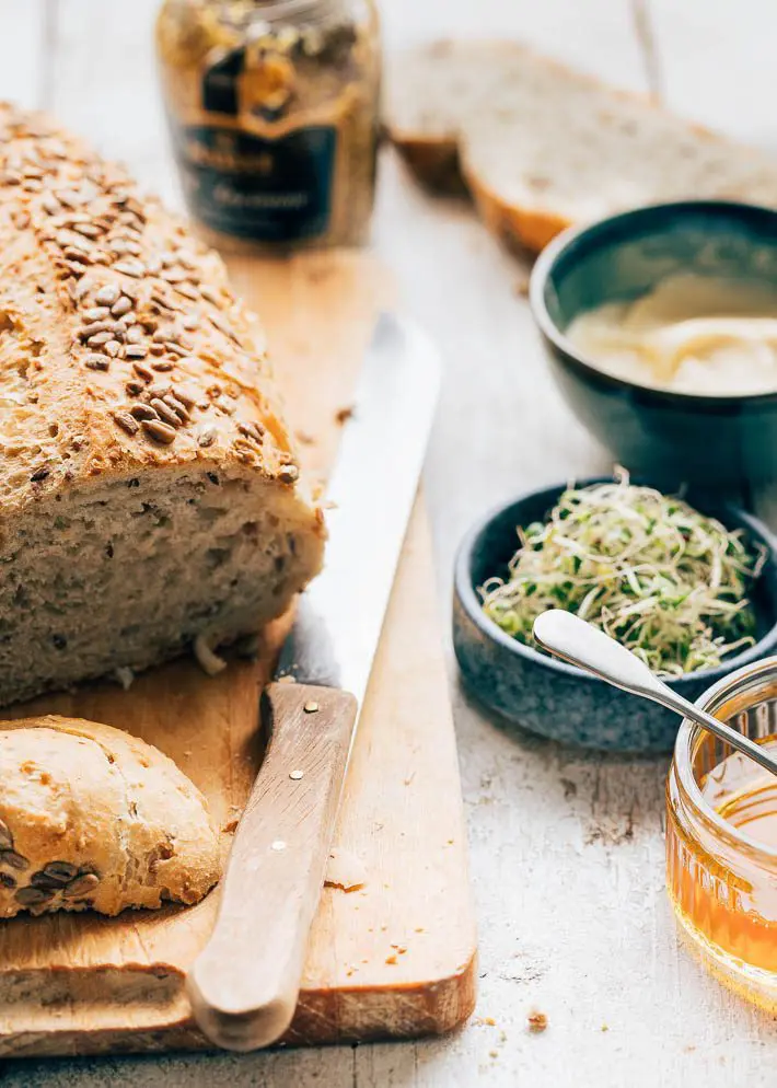 Een klassieke combinatie: honing en mosterd. De combinatie tussen zoet en zout vind ik heerlijk. Daarom ben ik denk ook zo gek op de Aziatische keuken, waarin ze meester zijn in dit soort smaakcombinaties. Maar deze klassieker wordt in heel veel Europese keukens gebruikt. Een lekkere pittige mosterd met een zoete honing. Omdat deze toast met honingkip een lunchrecept is (maar je kunt het ook lekker ’s avonds eten – maak er een knapperige groene salade bij en je bent klaar) ben je snel klaar met het koken. Het is een kwestie van toasten, mengen en de kip goudbruin bakken.