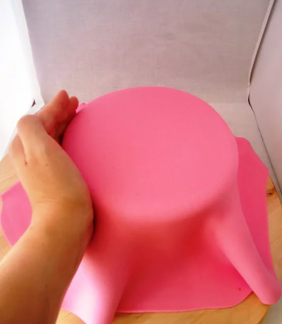 Nadat je de marsepein uitgerold hebt ga je deze glad maken met een smoother. Een smoother zorgt ervoor dat alle bobbels en oneffenheden uit de marsepein verdwijnen.