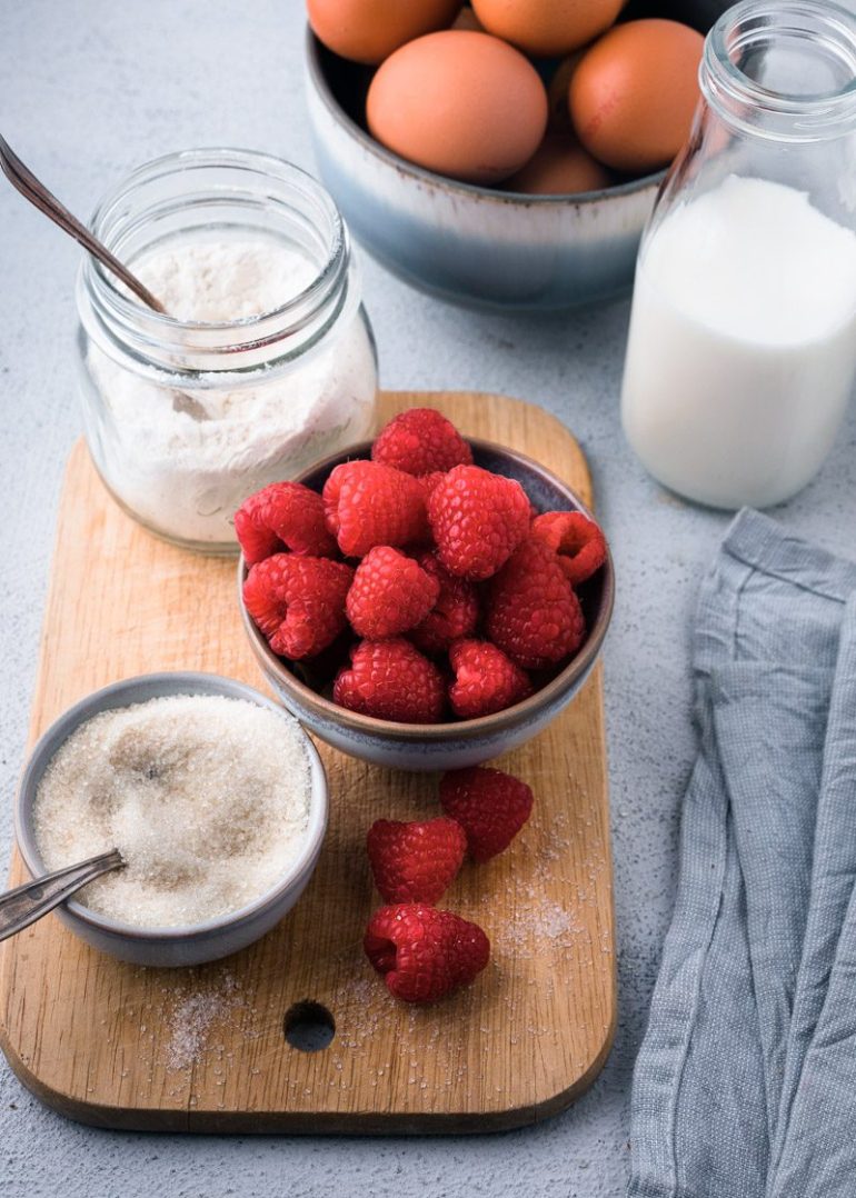Vandaag een superleuk bakrecept voor een Japanse cheesecake. Misschien vraag je je af of dat heel anders is dan een gewoon cheesecake recept. Het antwoord is “ja”. Een Japanse cheesecake is veel lichter van structuur, een beetje luchtig zelfs en smaakt ook minder zoet. Je bakt deze cheesecake in een waterbad zodat de cake niet uitdroogt tijdens het bakken. Het is niet heel ingewikkeld maar je moet er wel wat extra dingetjes voor doen. Als eerste moet je jouw springvorm echt heel goed inpakken in aluminumfolie. En doe dat gewoon maar 2 keer zodat je zeker weet dat er geen water in de vorm kan lopen. Wanneer het beslag klaar is giet je die in de ingepakte springvorm en die zet je in een braadslede. Schenk daarna kokend heet water in de braadslede (en natuurlijk niet in de springvorm). Wanneer het water tot de helft van de buitenkant van de springvorm komt is het helemaal goed. Zet daarna heel voorzichtig de braadslede in de oven. Wij vonden tijdens het testen dat de Japanse cheesecake wel iets zoets kon gebruiken en maakten er een snelle frambozensaus bij van bevroren frambozen. Het maakt de cheesecake qua smaak helemaal af en ziet er ook nog eens extra lekker uit! Deze Japanse cheesecake kun je heel goed een dag van tevoren maken, net als de frambozensaus.