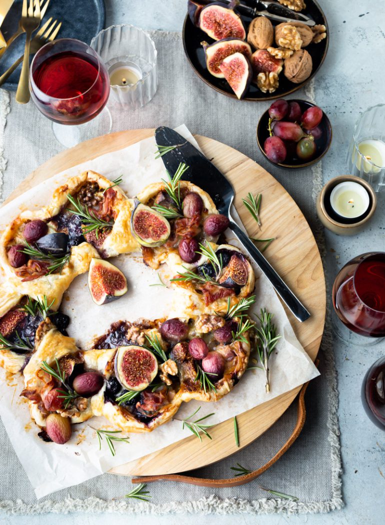 Deze feestelijke kerstkrans van bladerdeeg is perfect als je met Kerstmis een showstopper op de borreltafel wil zetten. Ook een verrassend alternatief voor het standaard kaasplank, want wij vulden hem met alles wat je normaal op een kaasplankje vindt. Sappige verse vijgen, mini druiventrosjes, walnoten, vijgenchutney, plakjes spek en geraspte kaas. Tip: steek er her en der wat takjes rozemarijn tussen voor een echt kersteffect. Deze kerstkrans staat ook nog eens veel sneller in de oven dan je denkt: al in 20 minuten ben je klaar met de voorbereiding! In het recept hieronder omschrijven we precies hoe je hem maakt.