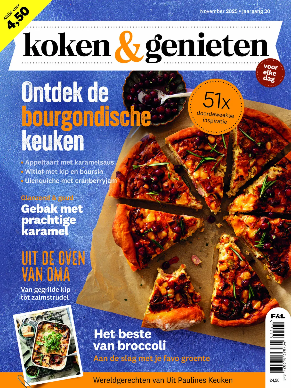 De nieuwste editie van Koken & Genieten staat helemaal in het teken van de bourgondische keuken. Lekkere comfortfood gerechten voor de koudere dagen.