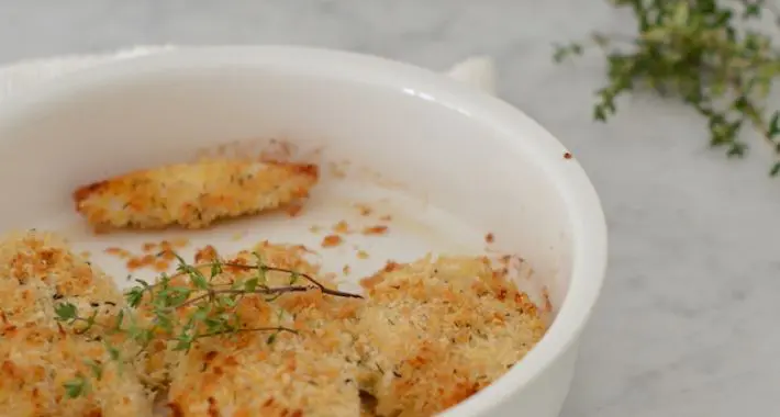 Bak de kip parmezaan in ongeveer 15 tot 20 minuten af in de voorverwarmde oven.