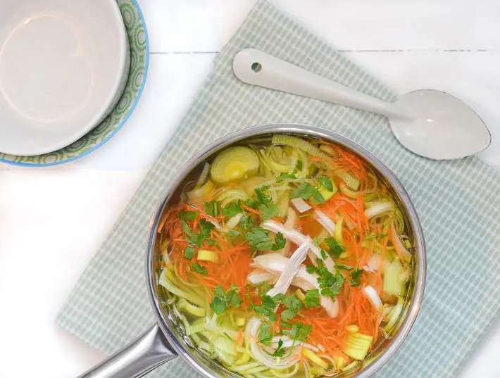 Zelf kippensoep maken is helemaal niet moeilijk! Dit is een recept voor verse kippensoep zonder pakjes en zakjes. Je maakt de verse soep van een hele kip. Eerst begin je met het maken van een eigen kippenbouillon en vervolgens krijg je een overheerlijke kippensoep. Wij gebruikten hiervoor een speciale soepkip, waardoor de bouillon nog lekkerder is.