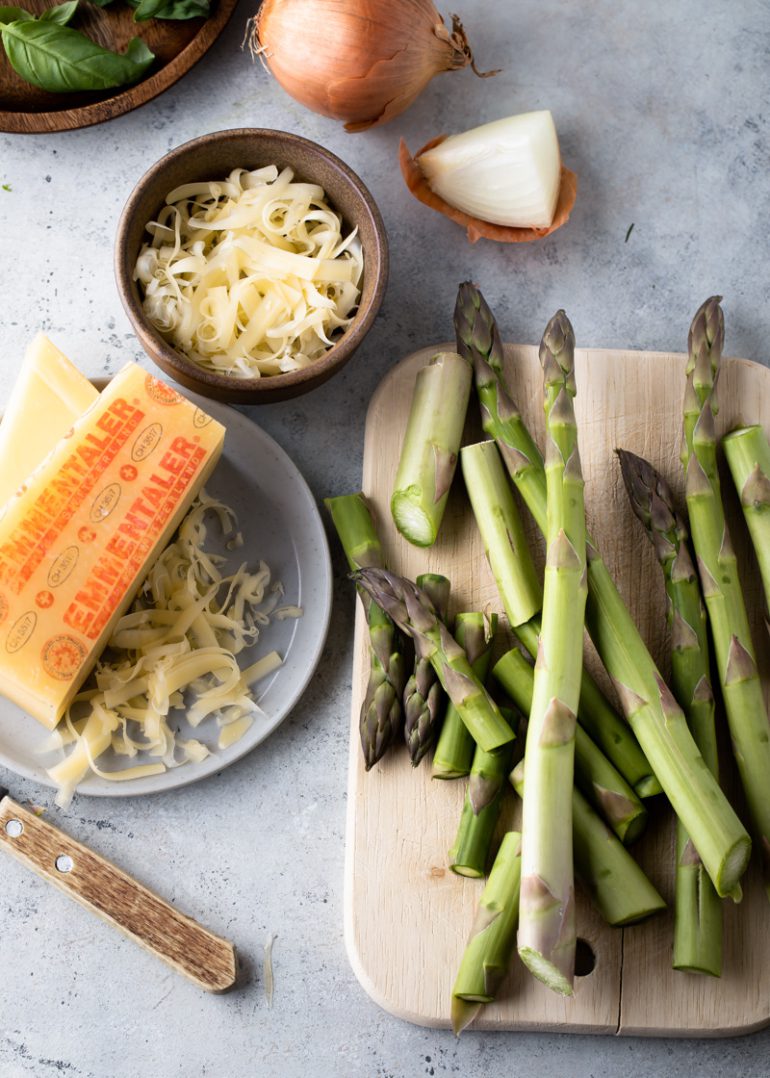 Deze pastaschotel brengt jouw favoriete voorjaarsgroenten, zoals groene asperges en doperwten samen met een heerlijke romige milde Emmentaler kaassaus. De pastaschotel kun je heel goed van te voren maken en later opwarmen, een perfecte gezinsmaaltijd! Je kunt de asperges en doperwten ook vervangen door paprika en courgette. Voor de romige kaassaus maak je eerst een super gemakkelijke homemade bechamelsaus, aan het einde voeg je geraspte kaas toe. Goed op smaak brengen en door de pasta scheppen. Deze pastaschotel uit de oven staat in 35 minuten bij jou op tafel!