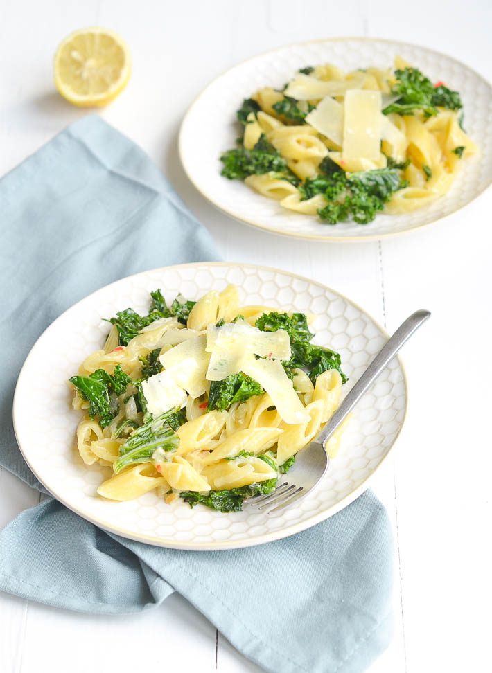 Pasta boerenkool is iets waar je niet zo snel aan denkt he? Geloof ons deze pasta met boerenkool wil je proeven hoor. We hebben er een Italiaanse twist aan gegeven door de boerenkool te combineren met een romige citroensaus en veel Parmezaanse kaas. Een lekker vega recept dus en ook nog eens supersnel klaar. Overigens ook harstikke lekker om nog wat krokant gebakken pancetta of een Italiaans worstje aan de boerenkool pasta toe te voegen. Wil je toch liever boerenkool op de traditionele manier? Maak dan deze boerenkool stamppot met worst.