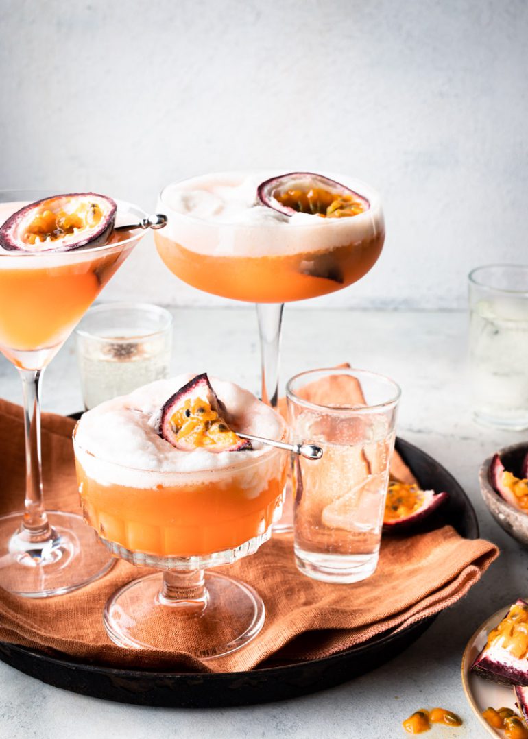 Zin in een lekkere en exotische cocktail? Maak dan eens een pornstar martini. De cocktail smaakt naar passievrucht en wordt gemaakt van wodka, passoa, mango- en limoensap. Om zo’n mooi schuimlaagje op je cocktail te krijgen gebruik je een shaker. Wanneer je de shaker van te voren even in de vriezer legt krijg je het beste resultaat. Voeg alle ingrediënten, ijsklontjes en eiwitten toe en shake 2 minuten flink krachtig met de shaker. Schenk de passievrucht cocktail door een zeefje in de glazen. Een echte pornstar martini serveer je met shotglaasjes prosecco, cheers!