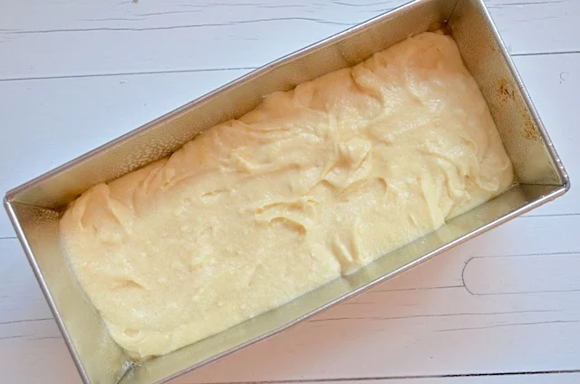 Vet een cakevorm in met een bakspray of boter en giet het beslag in de vorm.
