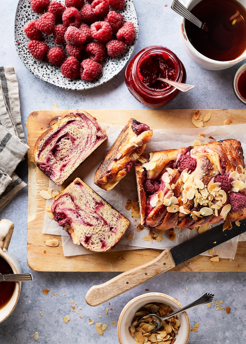 - Begin met het maken van de bodem. Snijd de boter in kleinere stukjes. Meng samen met de bloem, zout, gist, 3 theelepels suiker, 2 eidooiers en 70 ml melk in een keukenmachine tot een soepel deeg. Vorm er een bal van, leg in een kom, dek af met plasticfolie en laat 1 uur op kamertemperatuur rijzen.