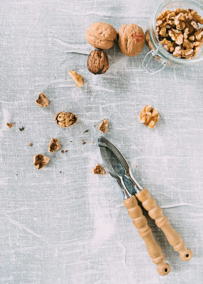 Rooster de walnoten kort in een droge koekenpan en voeg ze bij de salade.