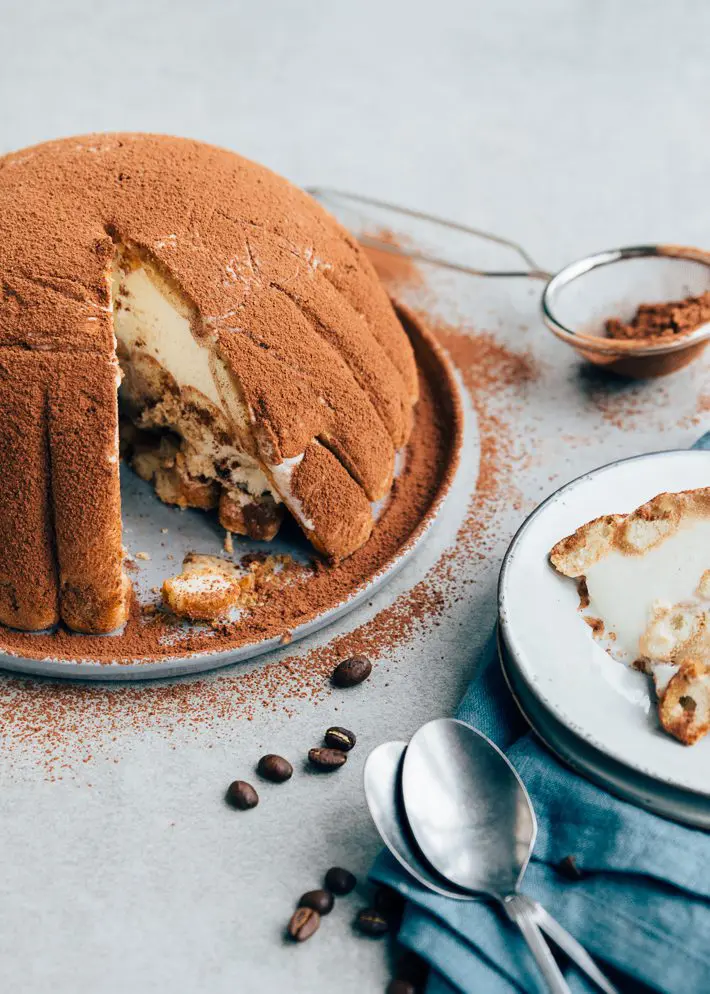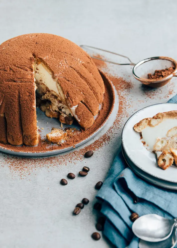 Dit recept voor tiramisu ijstaart is eigenlijk een beetje een cheat recept. We gebruiken kant-en-klaar ijs namelijk. Je kunt natuurlijk ook zelf het ijs maken, maar dan ben je wel wat langer bezig. Ik zou het lekker makkelijk houden en gewoon ijs bij de ijssalon of supermarkt kopen. Verder gebruiken we lange vingers die we dopen in koffie met een scheutje Amaretto. De Amaretto kun je eventueel achterwege laten als je de tiramisu ijstaart alcoholvrij wilt houden.
