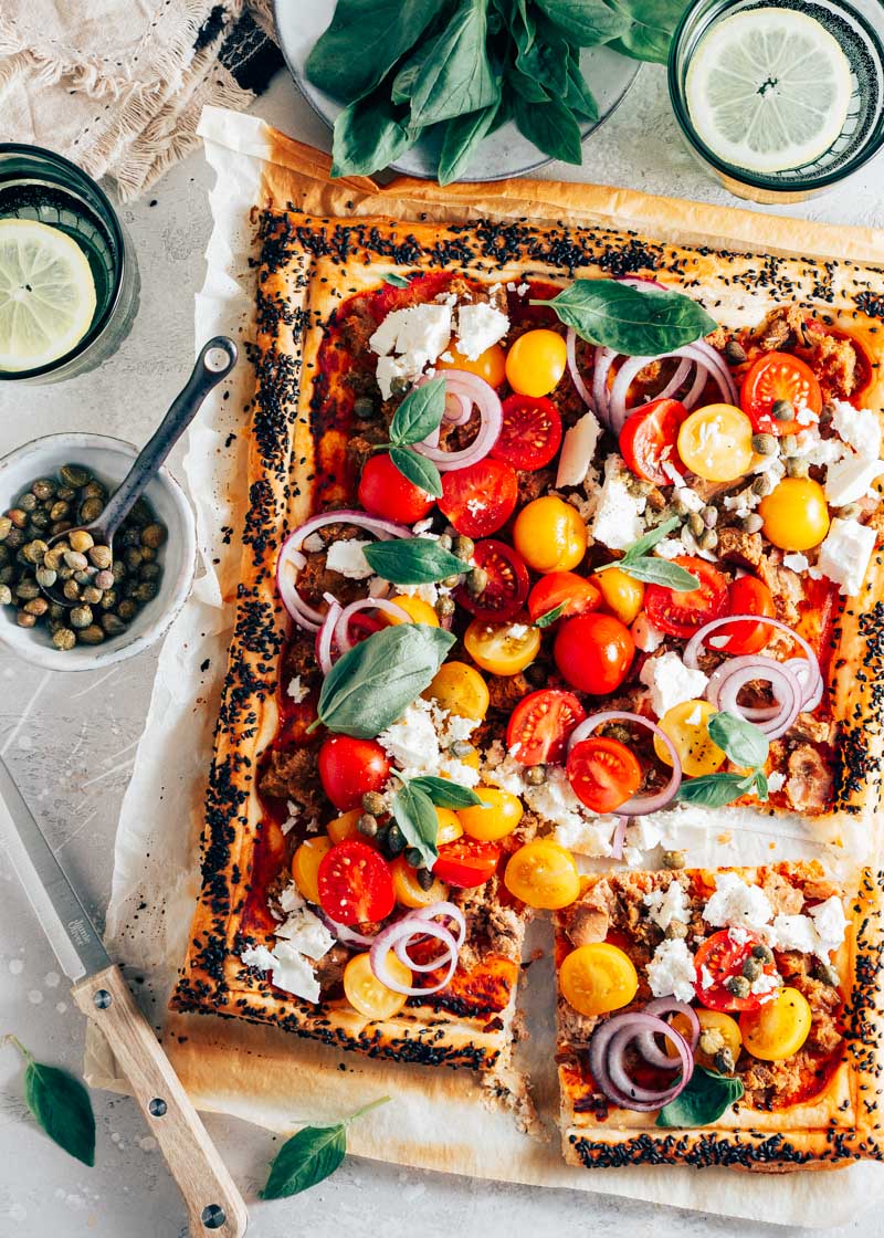 Vandaag weer een lekker borrelrecept: Turkse börek. Het is een behoorlijk vrije interpretatie kan ik al vooraf vertellen. Börek heb je in allerlei vormen en maten. Opgerolde rolletjes met of zonder vulling. Hartige varianten met en zonder vlees, gevuld met alleen feta of juist met alleen groenten. En zelfs zoete varianten. Börek bestaat ook als een soort lasagne. Ik heb me verder niet zo druk gemaakt over de vulling, of dat allemaal wel authentiek Turks is. Het is vooral een hele lekkere mix van champignons, spinazie en feta. Ik maakte me eigenlijk vooral druk om het filodeeg! Want daar worden ze van gemaakt.