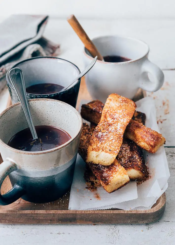 Wie lust er nou geen warme chocolademelk? Ik ken in ieder geval niemand. Mijn oma maakte de chocolademelk vaak op deze manier. Maar je moest het wel eerst even checken. Want wanneer ze geen tijd had, dan kreeg je lauwe opgewarmde pakjes chocolademelk van de kachel. Dat is dan wel even heel iets anders wanneer je je verheugd had op de variant van dit recept. Deze warme chocolademelk met sinaasappel wordt dus niet gemaakt met cacaopoeder of van die cacaokorrels, maar met pure chocoladepasta. Dat deed mijn oma dus vroeger ook. De smaak is veel voller en intenser en komt een beetje in de buurt van wat ze in Italië doen. Daar smelten ze gewoon pure chocolade! Gebruik voor een goede chocoladesmaak wel een pure chocoladepasta. Het extraatje in deze chocolademelk is die sinaasappel, die je er gewoon overheen raspt. Maak er ook die lekkere kaneelsoldaatjes bij. Langwerpige wentelteefjes die in de chocolademelk kunt dopen!