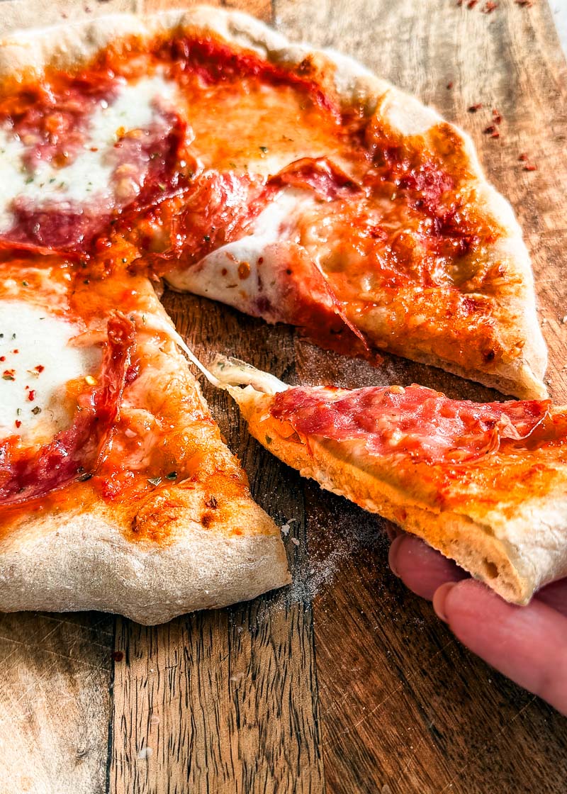 Wat is er lekkerder dan zelfgemaakte zuurdesem pizza met een knapperige bodem, luchtige korst én je favoriete toppings? Dit pizzadeeg is een combinatie van desem én gist: het beste van twee werelden. Je krijgt die lekkere smaak van een lang gerezen deeg, zonder dat het té ingewikkeld wordt.